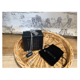 Diesel long chain silver dog tag necklace. Brand new in bag and box